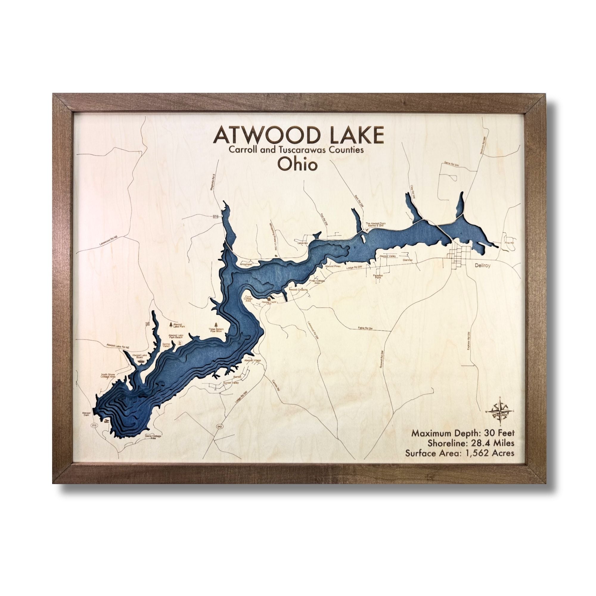 Each wood lake map is made from premium maple ply. Birch ply may be substituted on rare occasions.