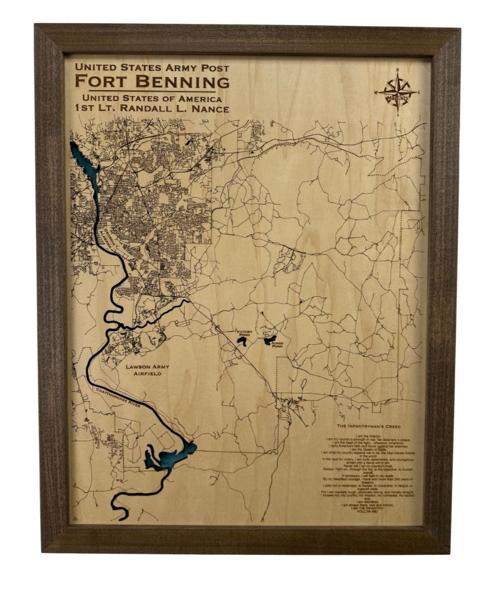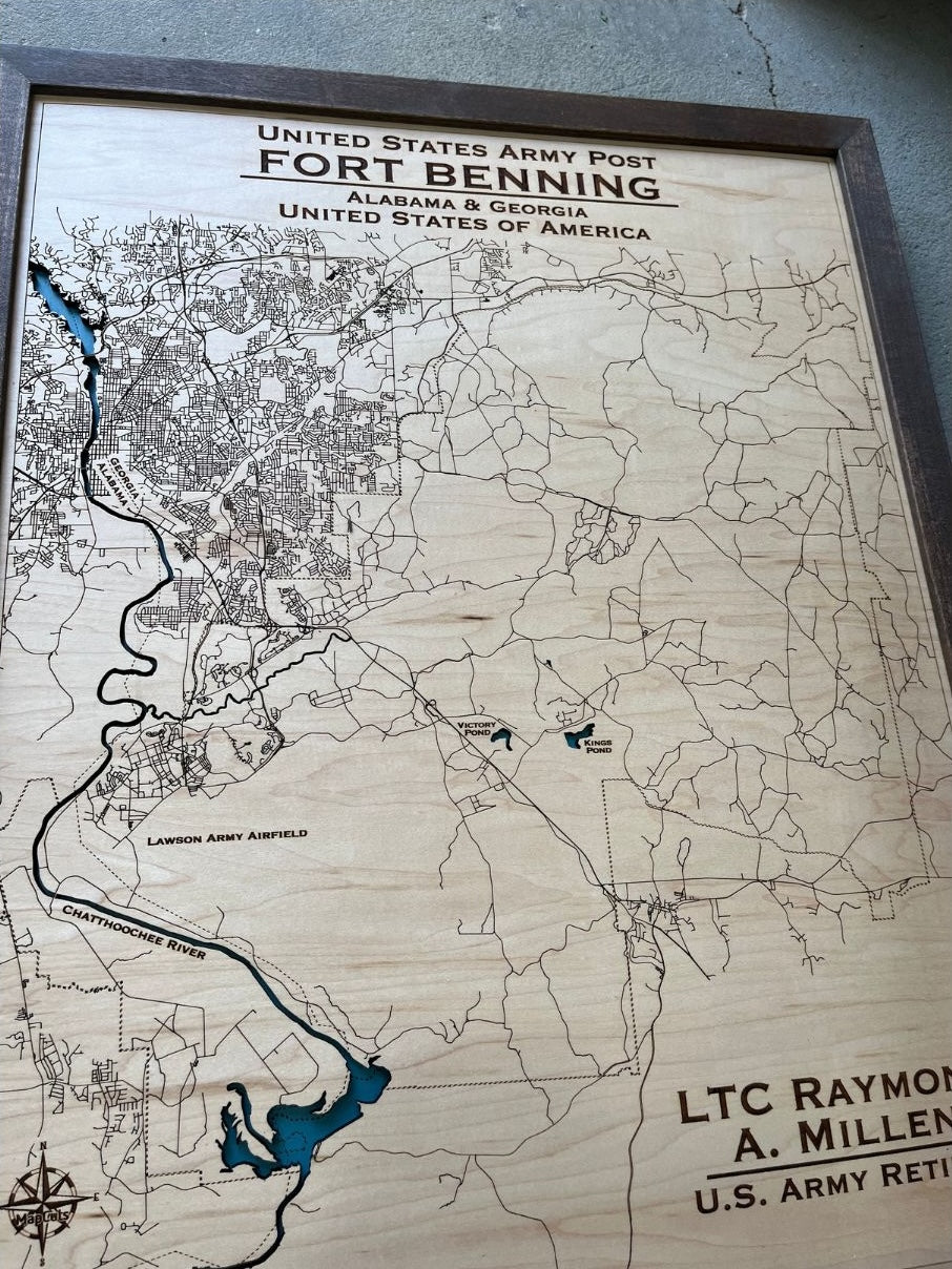 We can make a map of any army base around the world. Upload an image of the exact area you want included in your map.