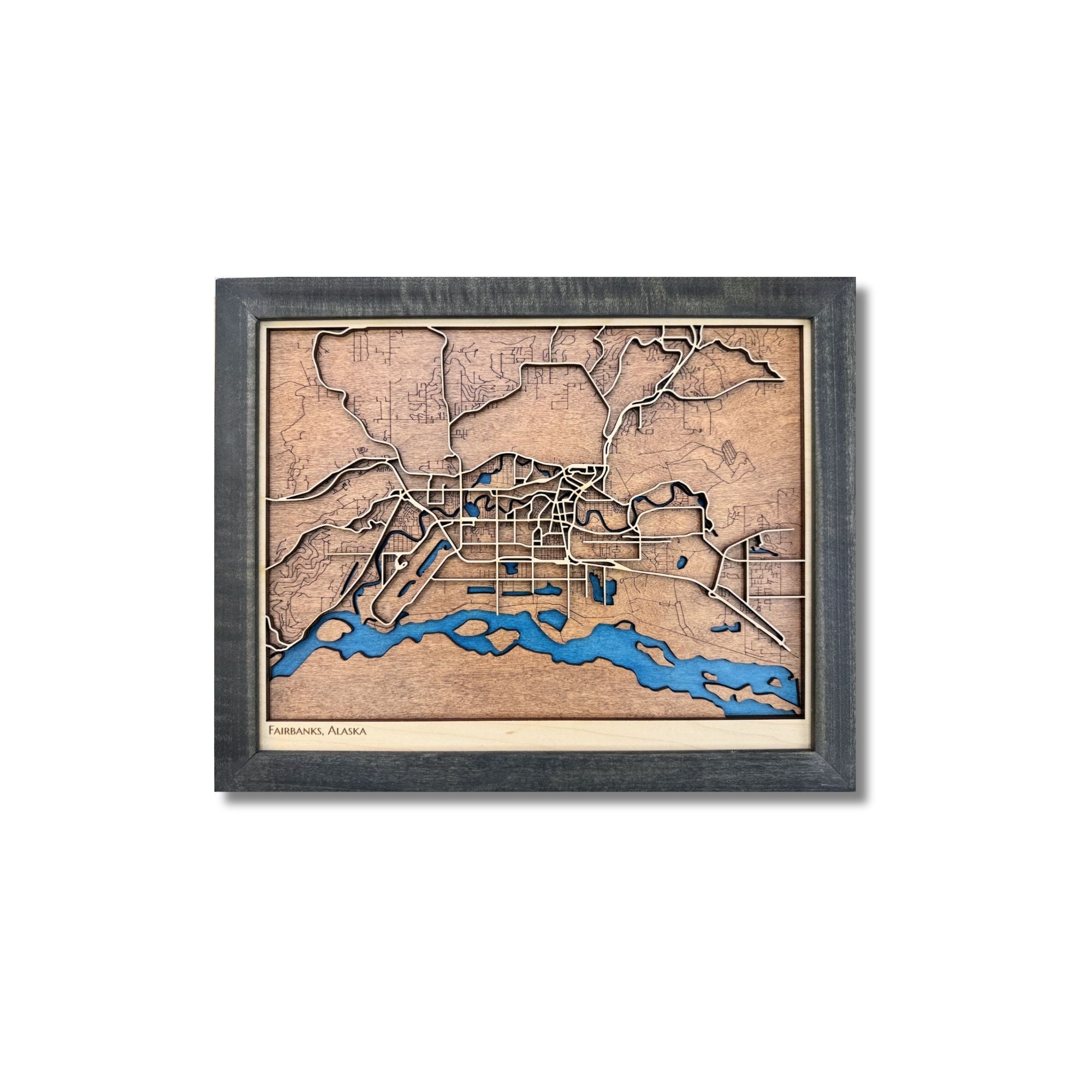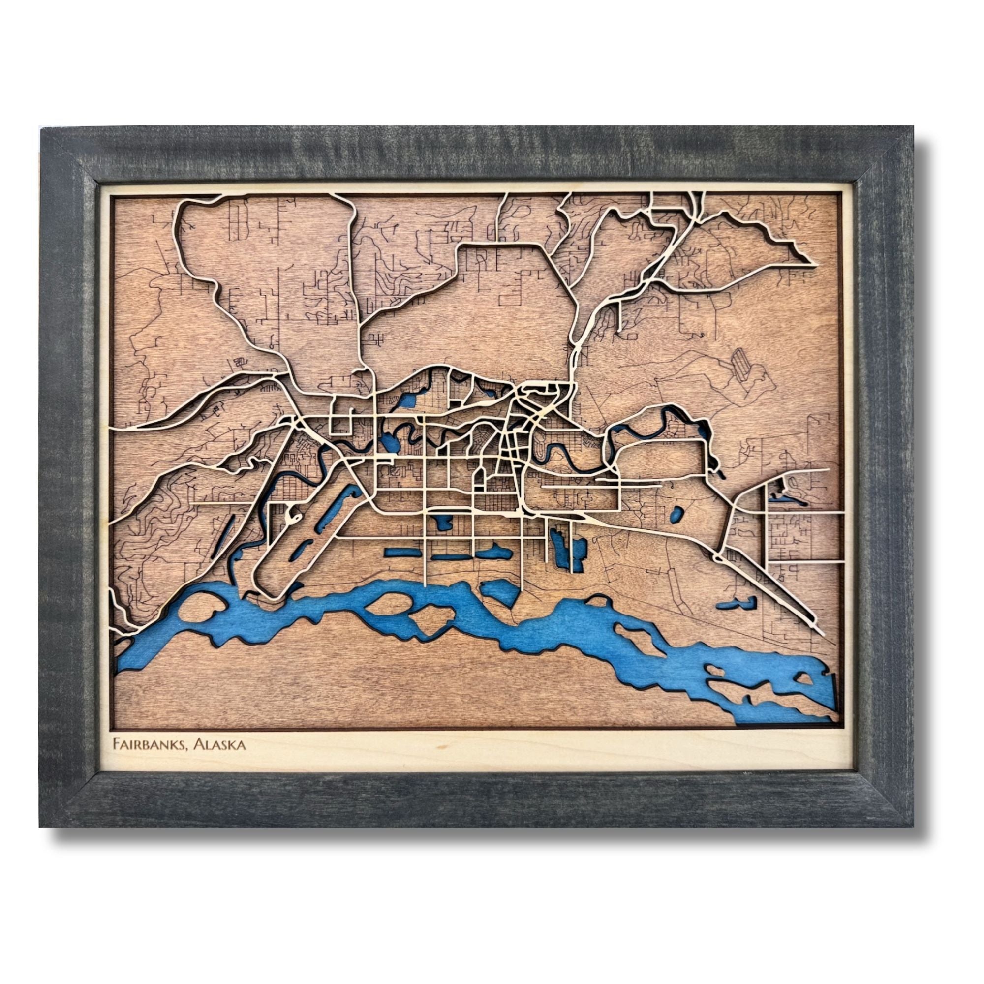 Each wood map is made from premium maple ply. Birch ply may be substituted on rare occasions.