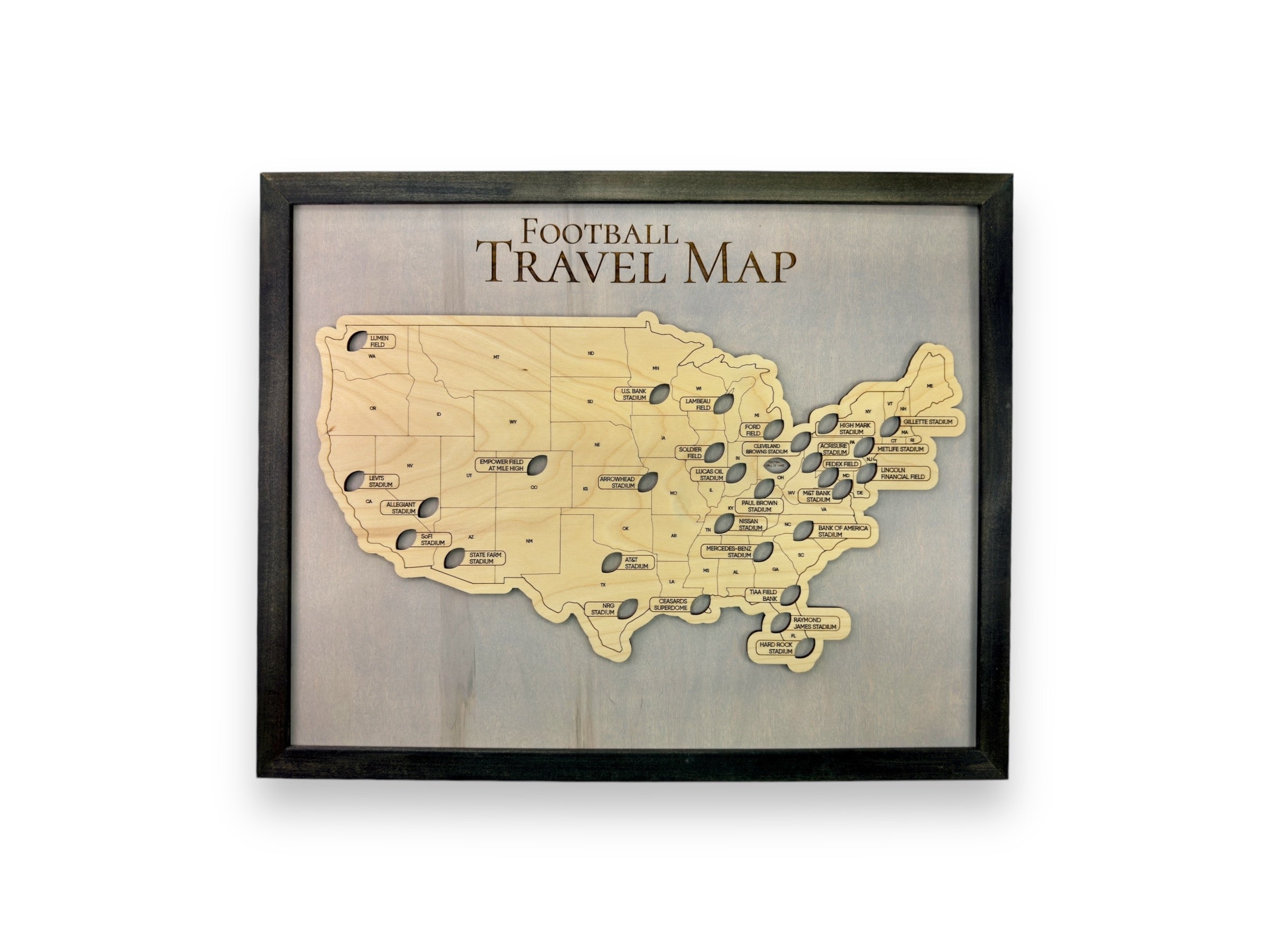 Comes with 31 removable football icons to track your stadium travels across the U.S.