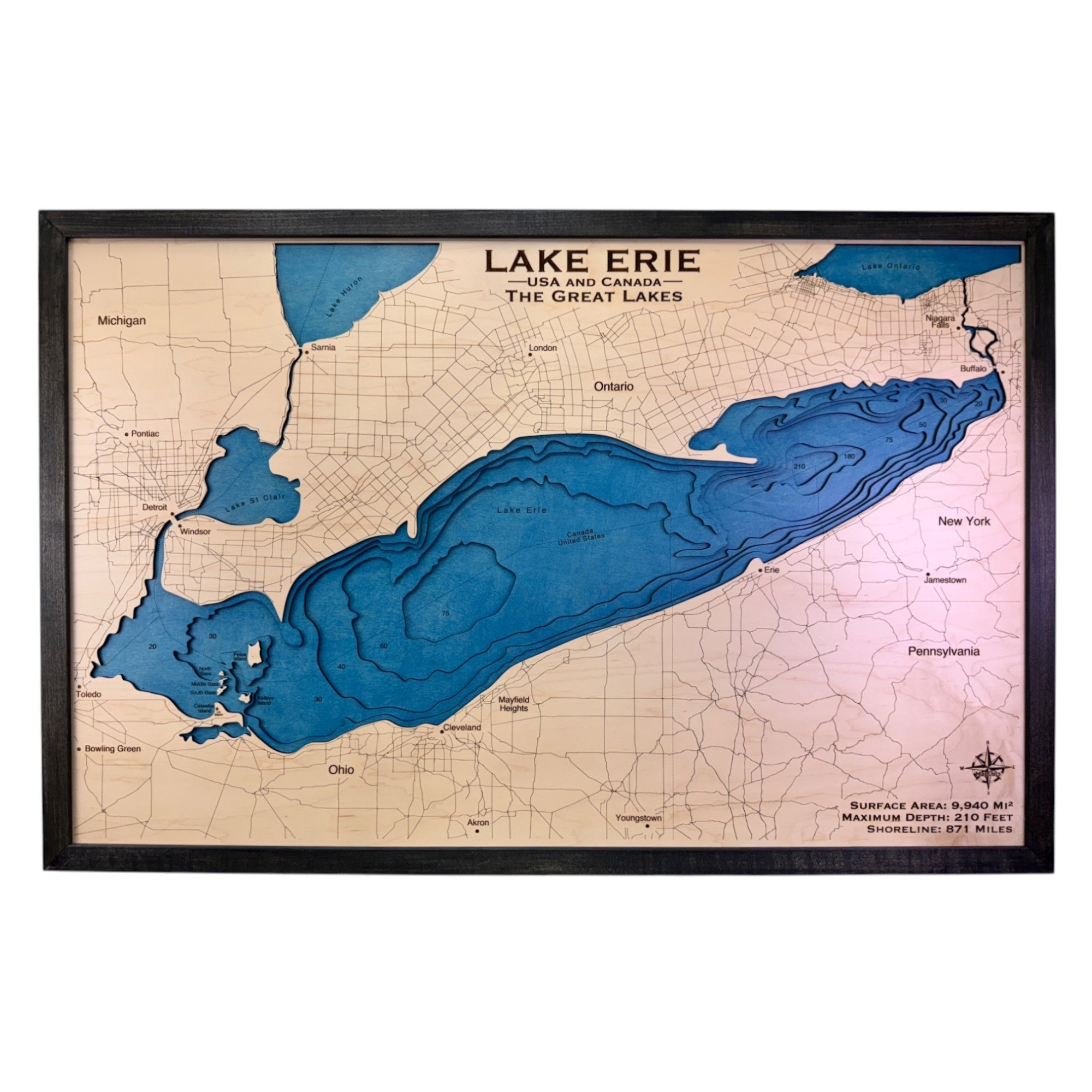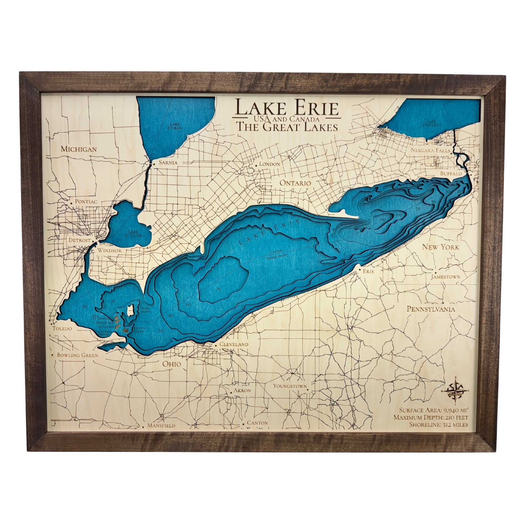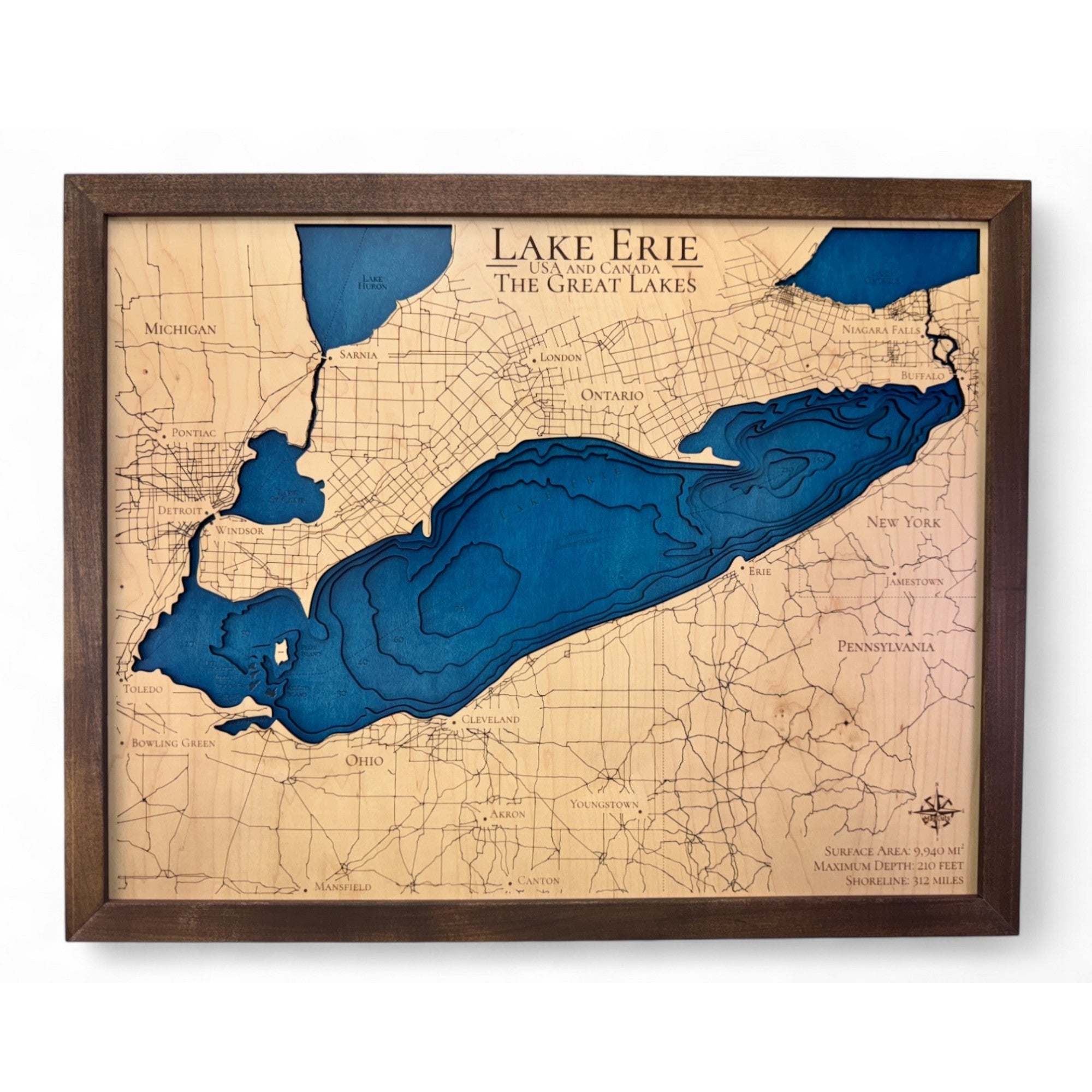 Each wood lake map is made from premium maple ply. Birch ply may be substituted on rare occasions.