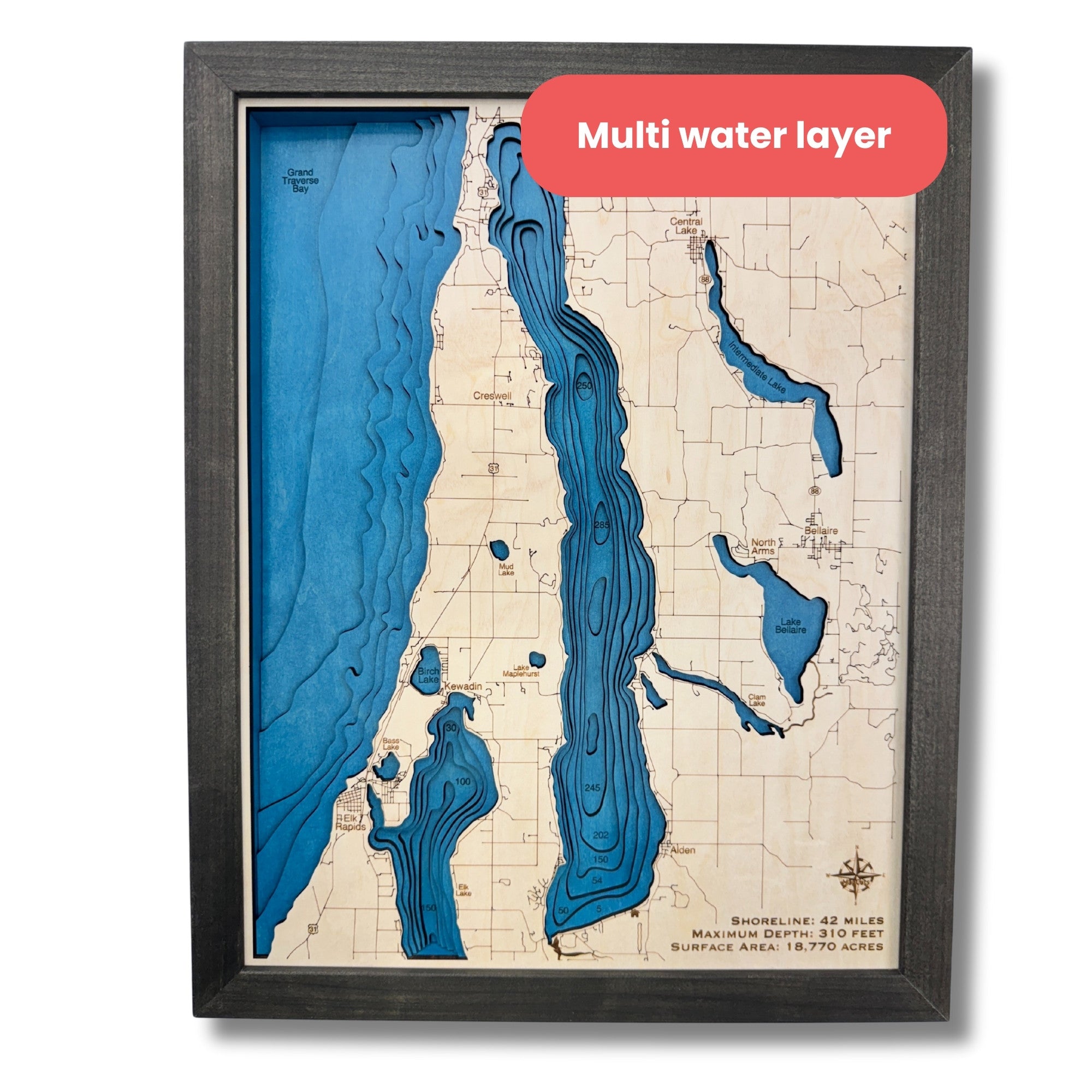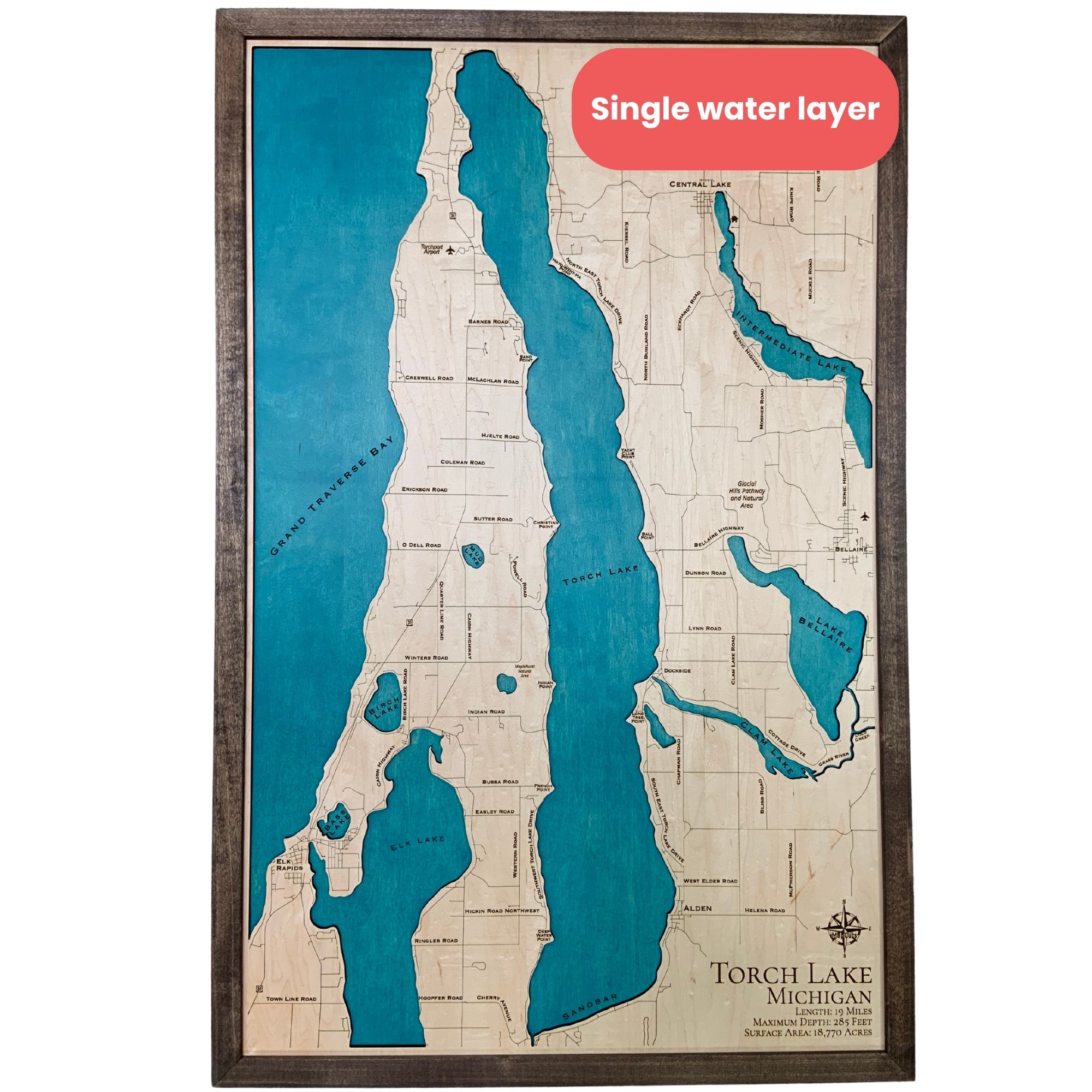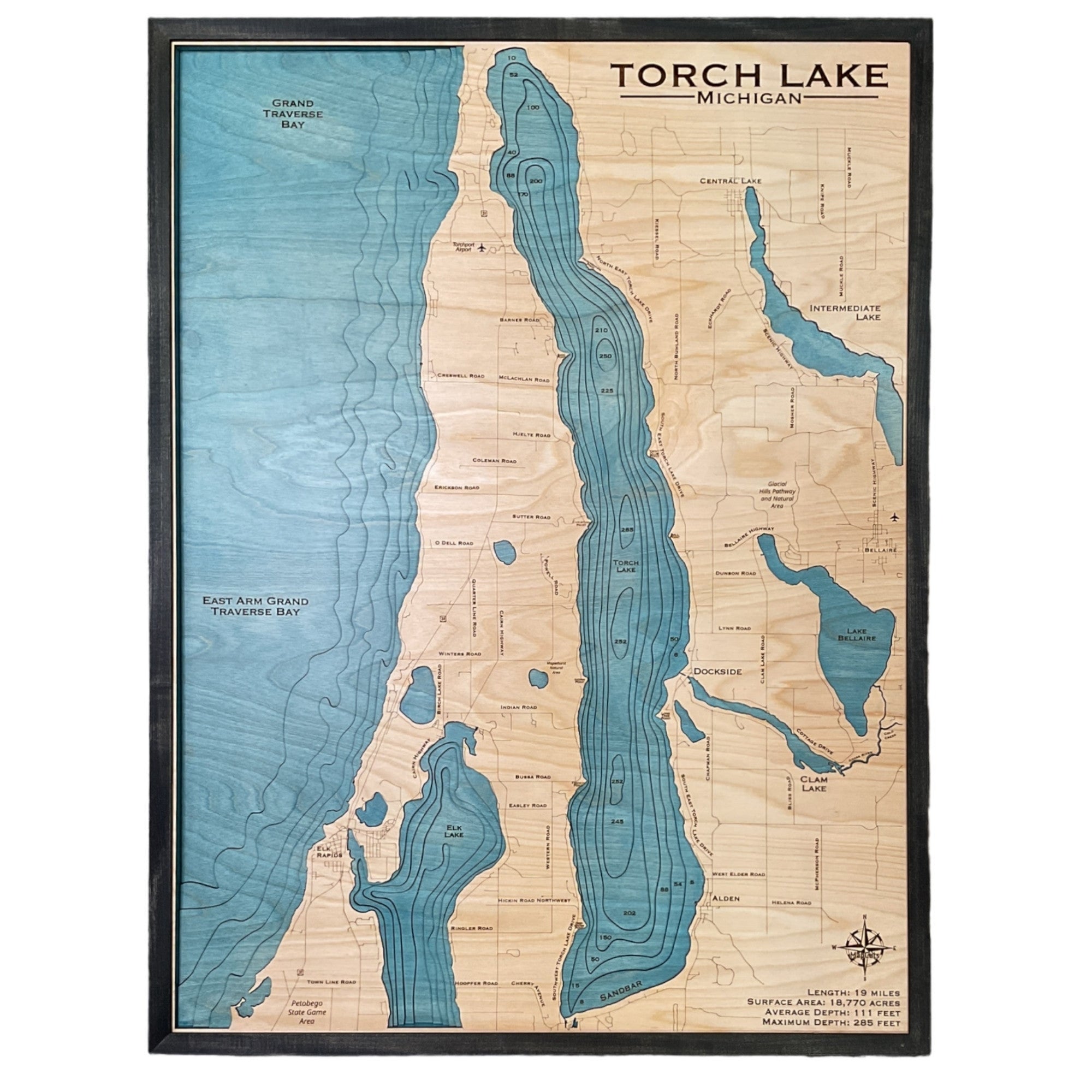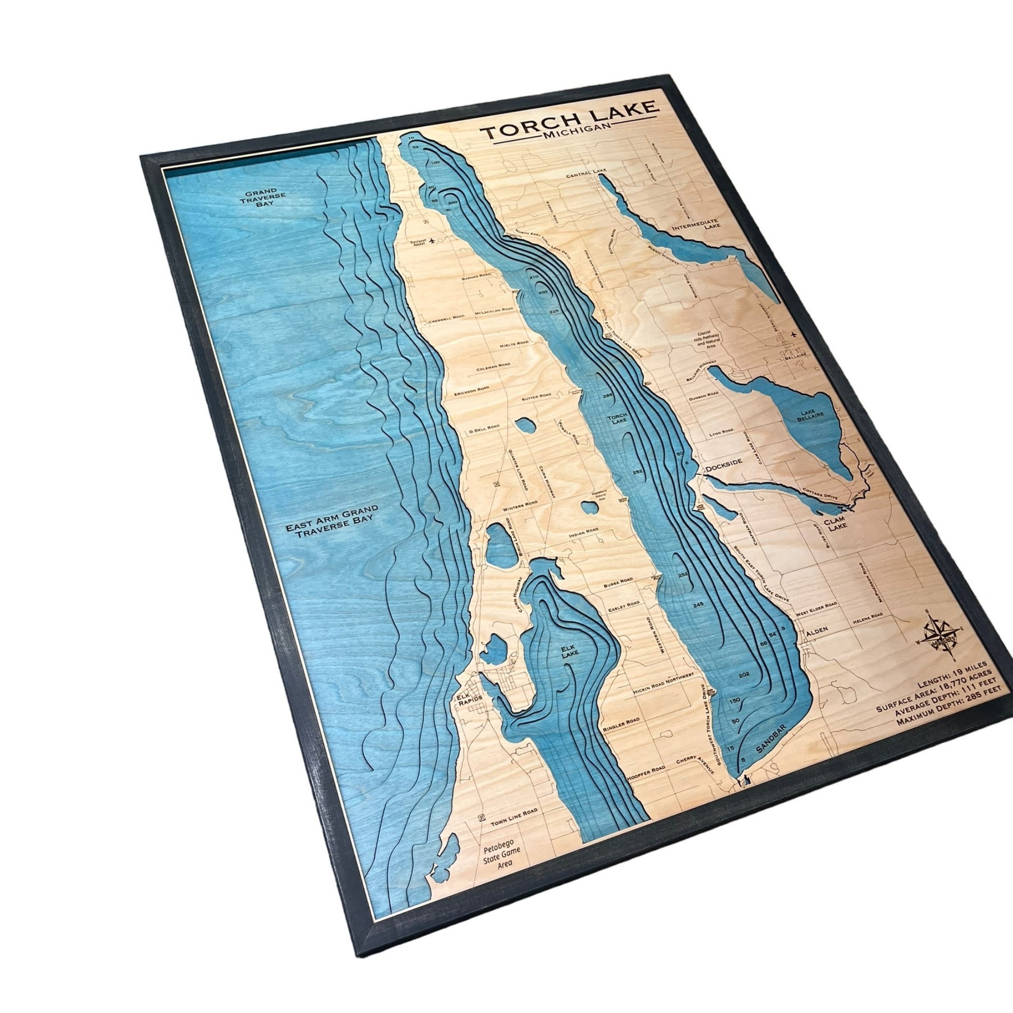 Wood map of Torch Lake