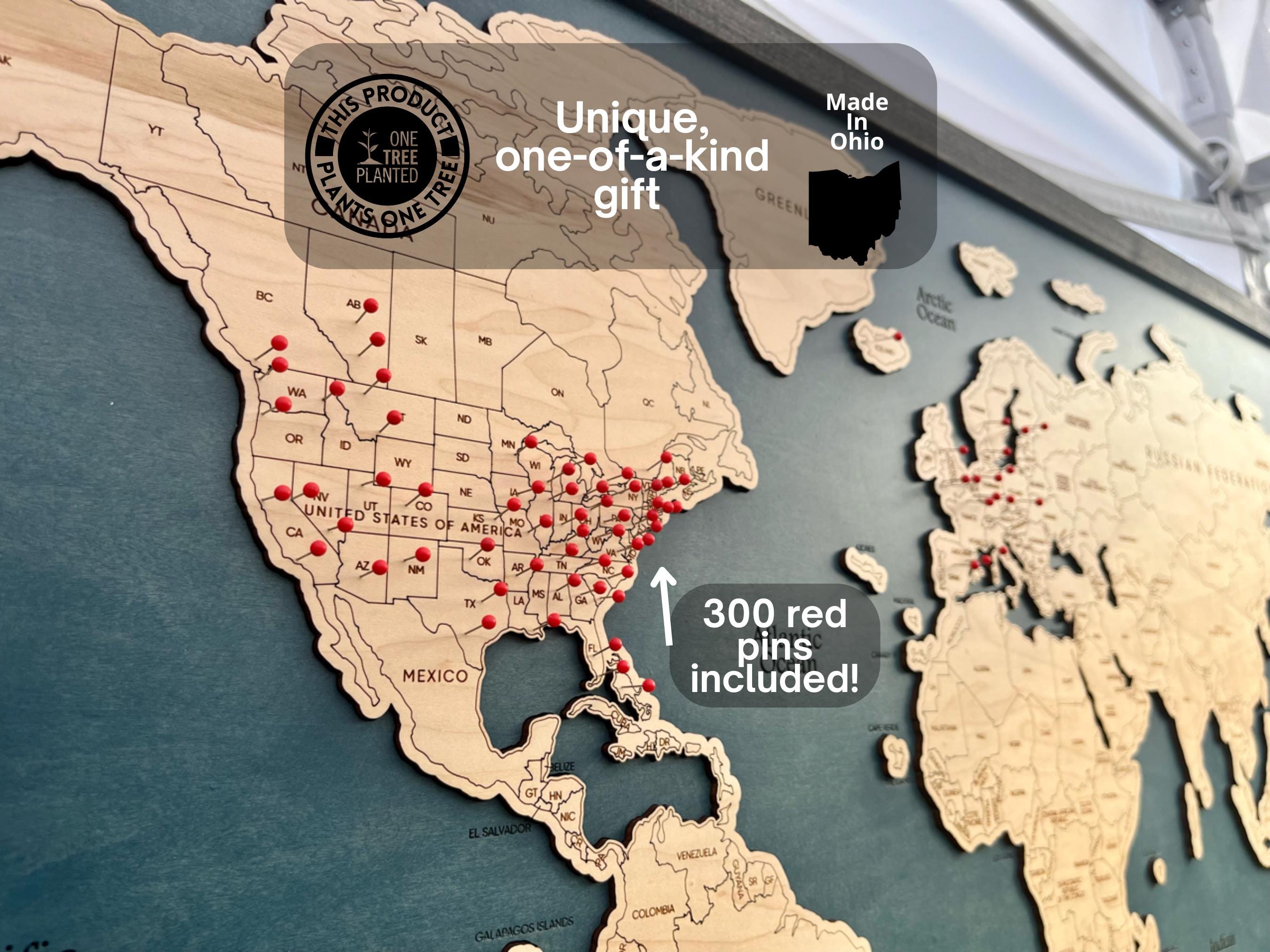 Each map comes with 300 red pins. Pins are easy to attach and remove.